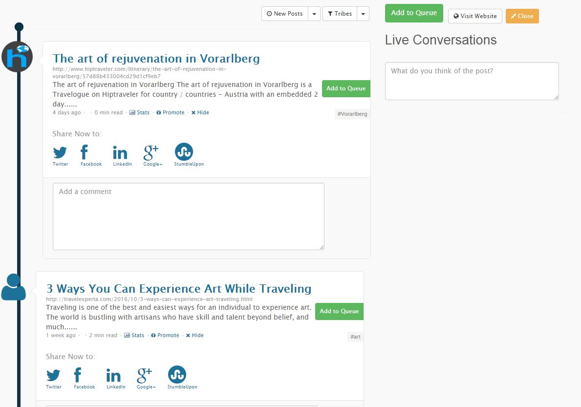 Triberr היא רשת חברתית בינלאומית של אלפי בלוגרים ברחבי העולם ( בעיקר בלוגים באנגלית) . באמצעות Triberr ניתן למצוא פוסטים מעניינים לפי תחומי עניין ולהתחבר לבלוגרים השותפים לאותו תחום עניין , ולקבל את הפוסטים שלהם על פי נושאי עניין המעניינים אותך. ניתן לייצור קשר ישיר עם אותו כותב בלוג וניתן גם להציב את הפוסטים שלו בסדר עדיפות גבוה יותר ברשת המעקב שלך .