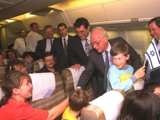 מקור וקרדיט לצילום : רה"מ רבין לוחץ ידי עולים מרוסיה / צילום: אבי אוחיון – לע"מ