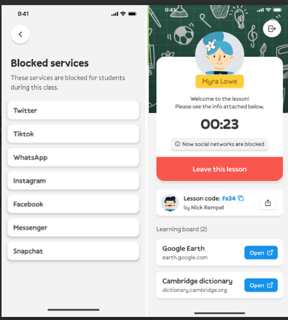 - חוסם אפליקציות מסיחות כמו ווטסאפ, אינסטגרם ופייסבוק בזמן השיעור