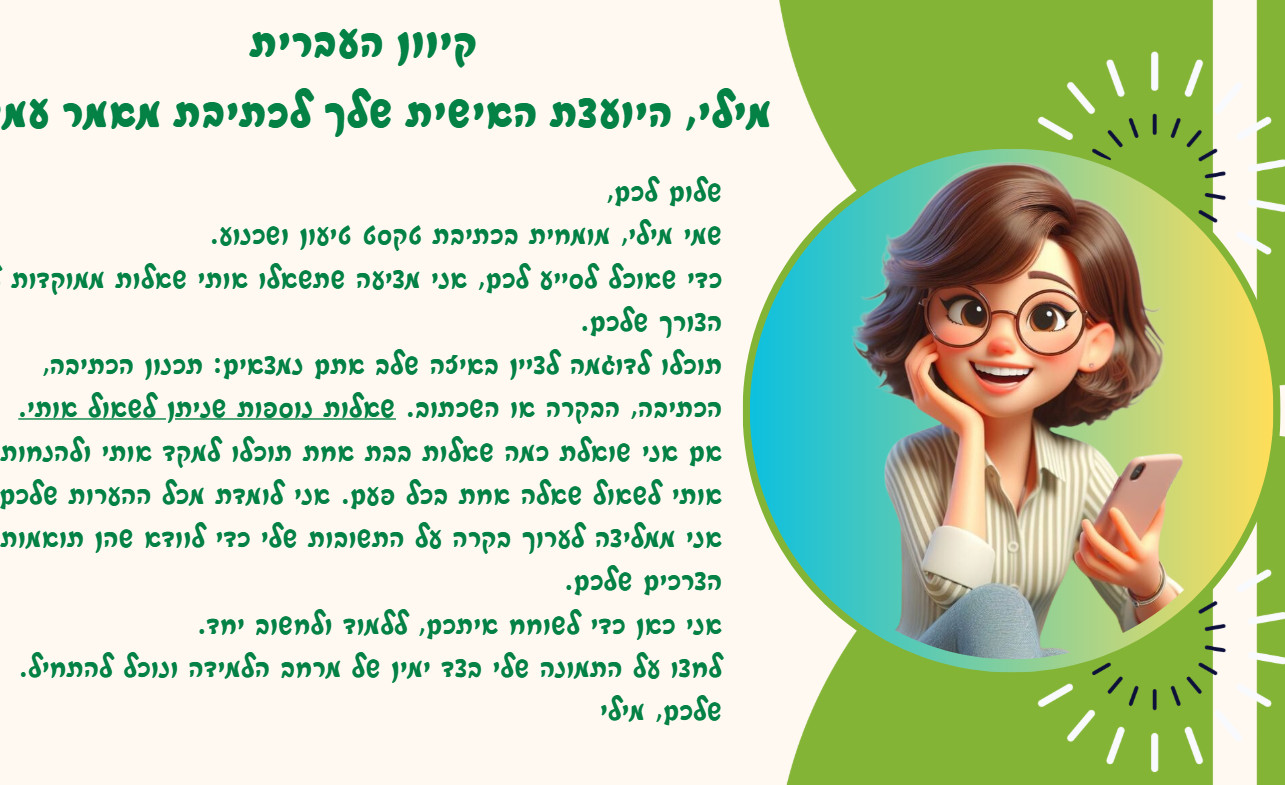 מילי, יועצת הבינה המלאכותית בקיוון העברית לתלמידים הלומדים עברית בעל-יסודי